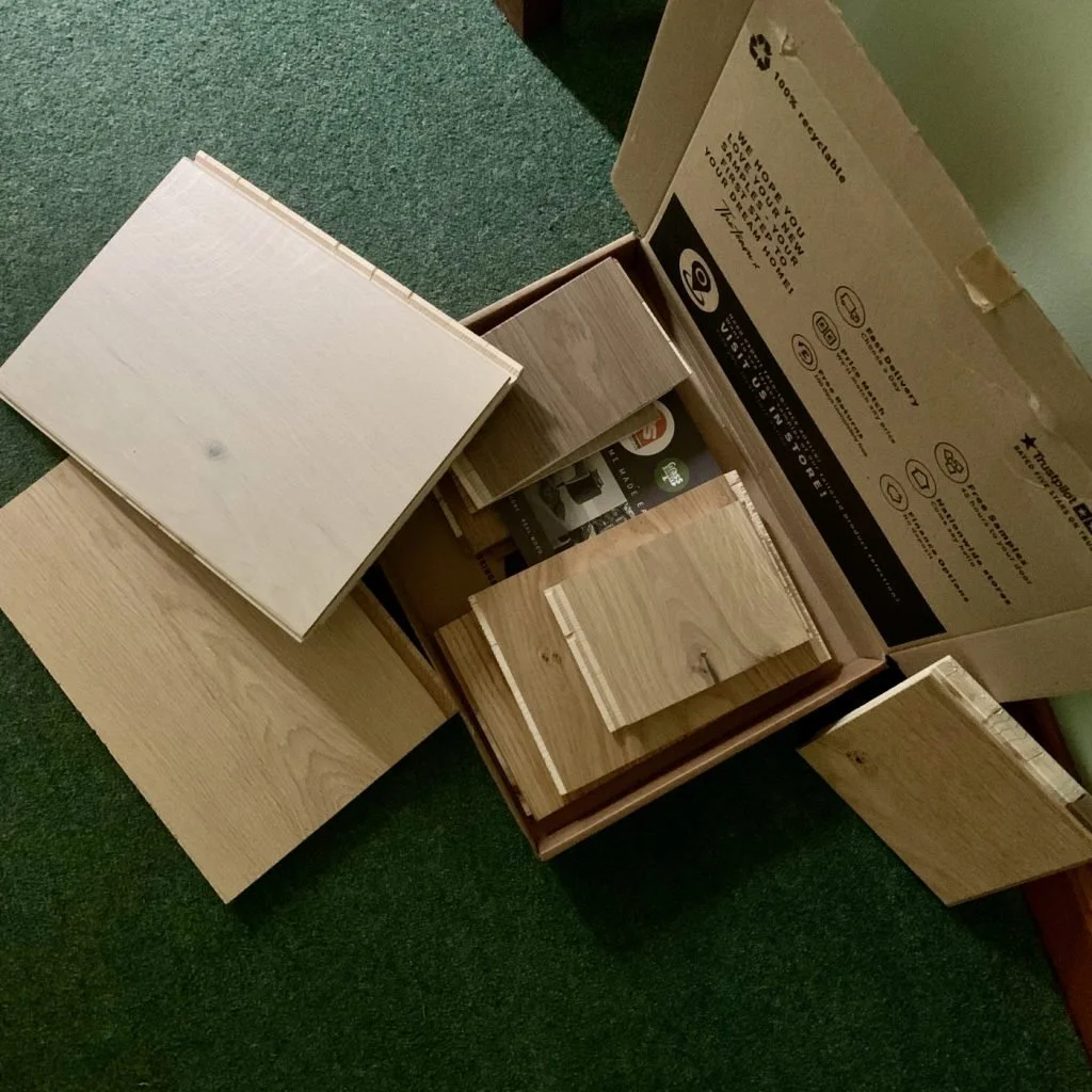 We have managed to acquire a small collection of wooden flooring samples, but we have NOT managed to decide on one that we like, let alone order any and actually lay it!!