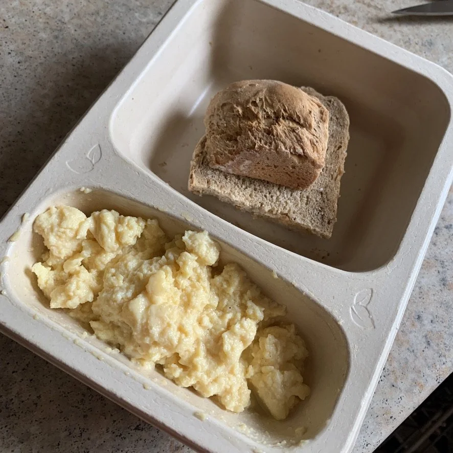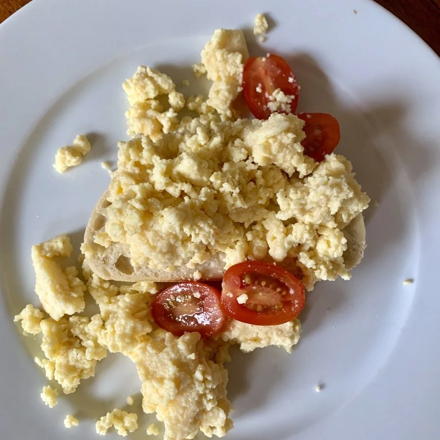 The scrambled egg, delivered in the recyclable pack above, looked so much more appetising heated up with some cherry tomatoes, some herbs would have been nice as well!