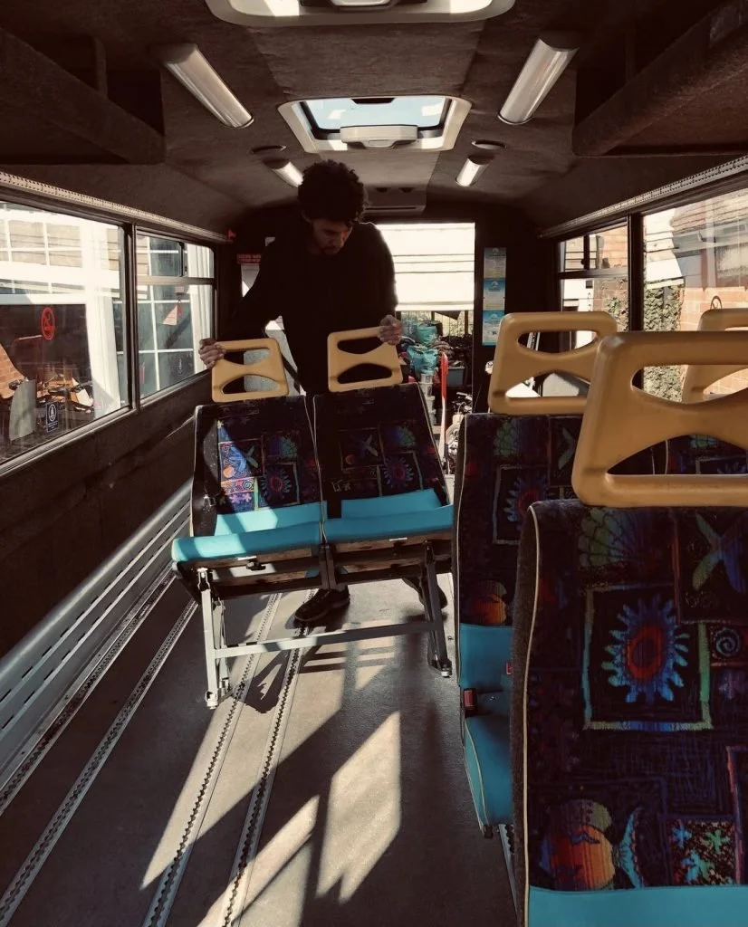 Here is River removing the original seating when they first bought it